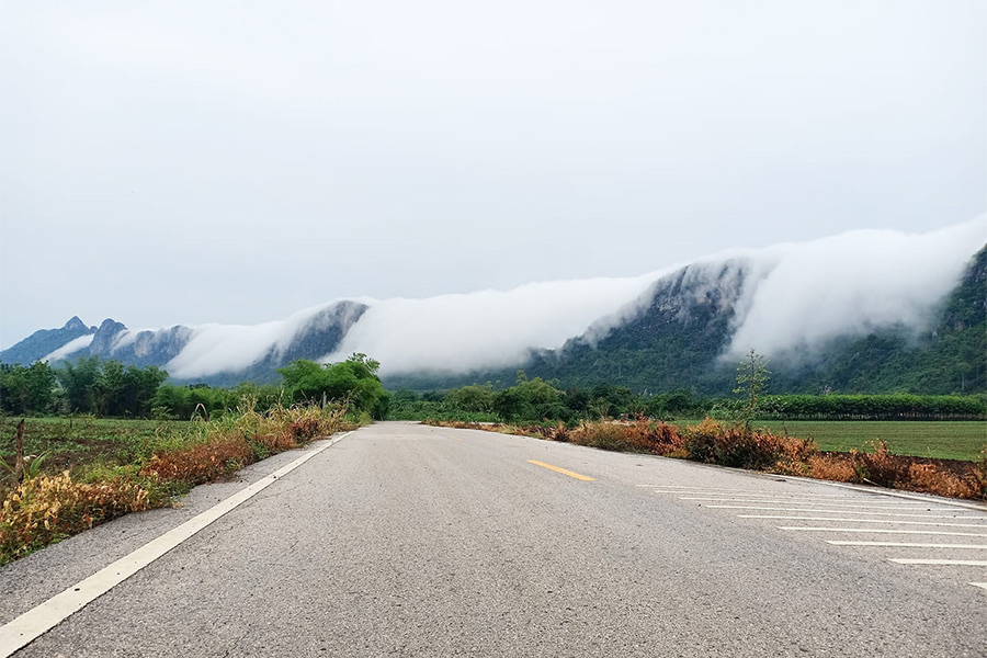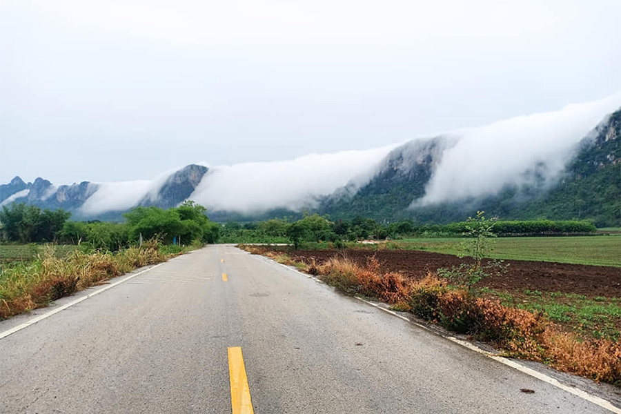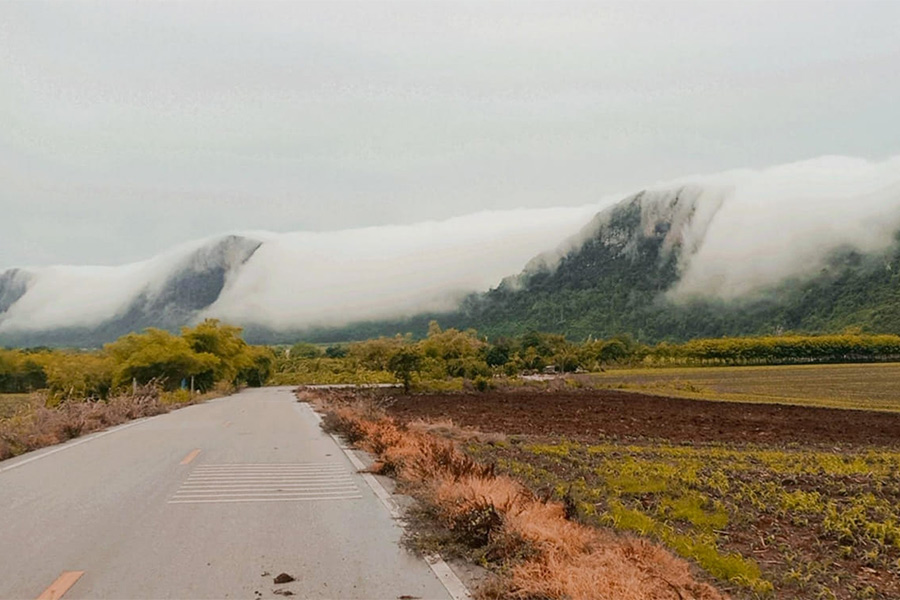ภาพหลังจากอากาศร้อนอบอ้าวมานาน จนเกิดพายุฤดูร้อน ทำให้ฝนตกในหลายพื้นที่ของจังหวัดสระแก้ว จนเกิดเป็นน้ำตกหมอกลอยขึ้นเมื่อมาเจอกับภูเขาทำให้หมอกยกตัวขึ้นแล้วตกลงหลังเขาคล้ายน้ำตก เป็นปรากฏการณ์ธรรมชาติที่นานๆ จะพบหมอกรวมตัวกันแน่นอย่างสวยงาม