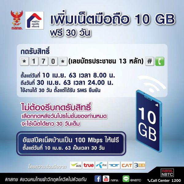** ไม่ต้องลงทะเบียน ผู้ให้บริการจะอัพสปีดให้เองตั้งแต่ 10 เมษายน (ใช้ได้ฟรี 30 วัน)