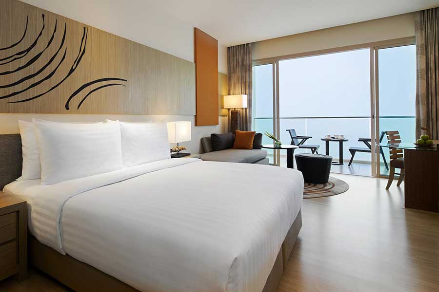 เพียงรับประทานอาหารภายในโรงแรม 8,000 บาทขึ้นไป รับฟรีห้องพัก 1 คืน แบบดีลักซ์ ซีวิว (Deluxe Sea View Room) สามารถมองเห็นทะเลอ่าวไทยที่สวยงามแบบพาโนรามา พร้อมอาหารเช้าสำหรับ 2 ท่านมูลค่า 10,000 บาท