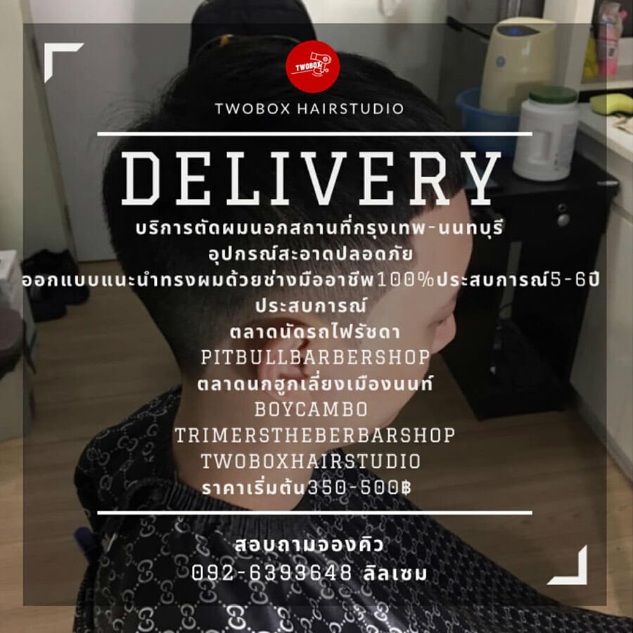 TWO BOX Hair Studio ร้านตัดผมชายตลาดนกฮูก-ตัดผมนอกสถานที่แบบ Delivery ในกรุงเทพ มีบริการพื้นที่ อโศก สุขุมวิท สยาม สามย่าน สาทร พระรามเก้า อนุสาวรีย์ชัยสมรภูมิ จตุจักร บางซื่อ สะพานควาย สุทธิสาร ห้วยขวาง รามคำแหง บางกะปิ รามอินทรา ลาดพร้าว เสนานิค ลาดพร้าววังหิน ดินแดง พหลโยธิน หลักสี่ วิภาวดี ดอนเมือง เกษตรนวมินทร์ โชคชัย4 และนนทบุรีทุกพื้นที่ เน้นบริการดีที่ส่งถึงบ้าน โดยคิดราคาเริ่มต้นที่ 350 บาท ค่าเดินทางฟรีระยะทาง 15 กิโลเมตร