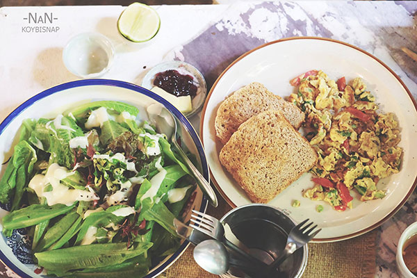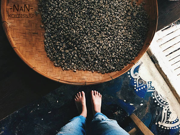 ผมถึงน่านเวลาประมาณ 6โมงเช้าครับ อากาศดีเย็นๆมีหมอกด้วยครับ ผมให้เพื่อนส่ง location เพื่อที่จะไปกินอาหารเช้ากันที่นั่น ดูระยะทางแล้วไม่ไกลครับ เดินดีกว่าอากาศก็ไม่ร้อน เกสเฮ้าส์ที่ K พักอยู่คือ Sudrit Arts Gallery Cafe & Guesthouse ครับ เปิดแต่เช้าเลยครับ ผมสั่งอาหารเช้าไปอร่อยดีครับ สำหรับคอกาแฟผมแนะนำที่นี่เลยครับ เพื่อนผมบอกว่ากาแฟอร่อยดี  กาแฟเข้มข้นและหอมมาก มีกาแฟดริปด้วยครับ ผมไม่ใช่คอกาแฟเลยไม่รู้ว่ารสชาติกาแฟแบบไหนที่อร่อย บรรยากาศที่นี้ถือว่าดีมาก รอบๆบ้านเต็มไปด้วยต้นไม้ มีงานศิลปะให้ชมด้วยครับ