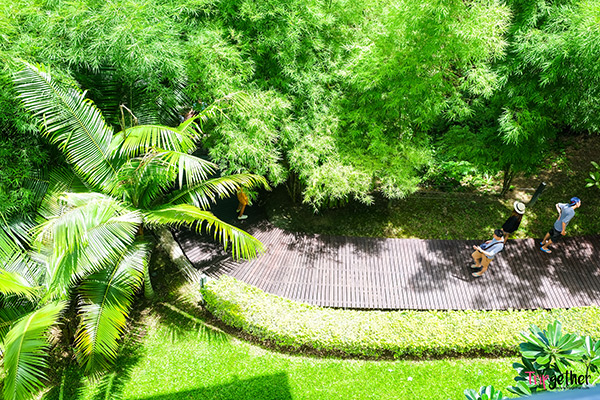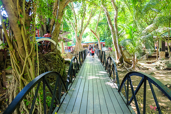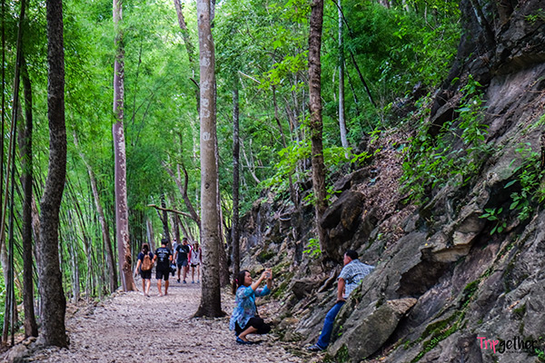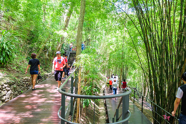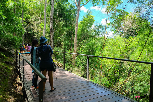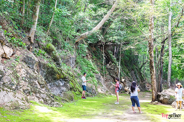 จากด้านบนพิพิธภันฑ์เราเดินตามเส้นทางลงมาด้านล่าง เมื่อไปยังจุดไฮไลท์ช่องเขาขาด ซึ่งระหว่างทางจะแวดล้อมไปด้วยต้นไม้ที่ร่มรื่น มีจุดให้นั่งพักผ่อน