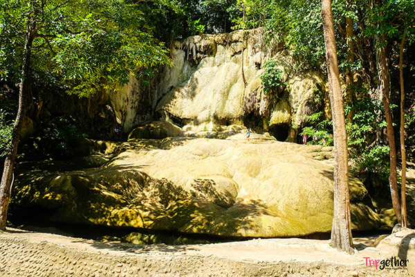 กินข้าวเสร็จตั้งใจว่าจะแวะขึ้นไปนั่งริมน้ำตก เอาเท้าจุ่มน้ำให้เย็นขึ้นมาถึงใจ แต่น้ำแห้งสนิท เรียกว่าไม่มีสักหยด อาจจะเป็นเพราะเพิ่งจะเข้าหน้าฝน น้ำเลยยังมาไม่ทัน แต่ไหนๆ มาถึงแล้วก็เลยเดินเล่นแวะถ่ายรูปเก็บบรรยากาศกันสักหน่อย