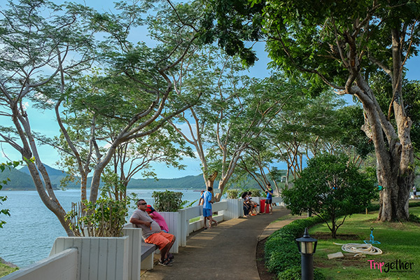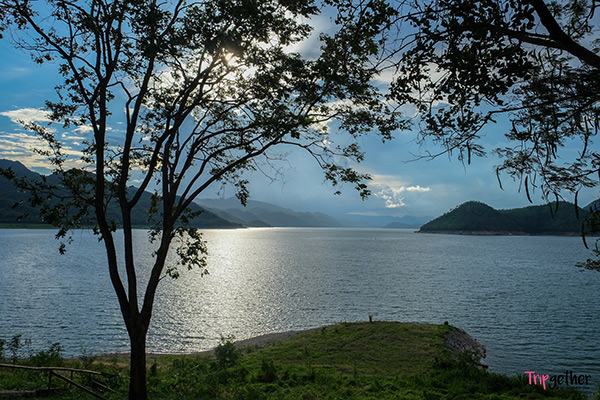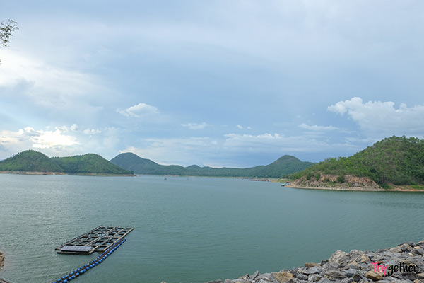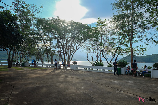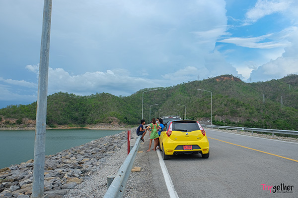 ตอนแรกเราตั้งใจจะมุ่งหน้าเข้าตัวเมือง แต่รู้สึกว่ายังไม่อิ่มเท่าไรเลยขับรถแวะไปเที่ยวชมวิวสันเขื่อนศรีนครินทร์กันต่อ ซึ่งในช่วงวันเสาร์ อาทิตย์ ที่นี่จะมีร้านอาหารเปิดให้บริการหลายร้าน เราเลยได้นั่งกินข้าว ส้มตำ ในราคาไม่แพงกันที่นี่