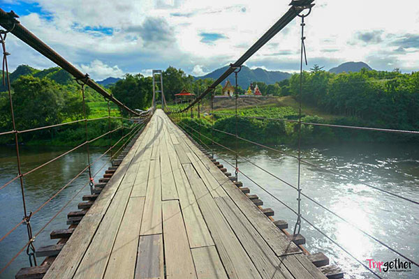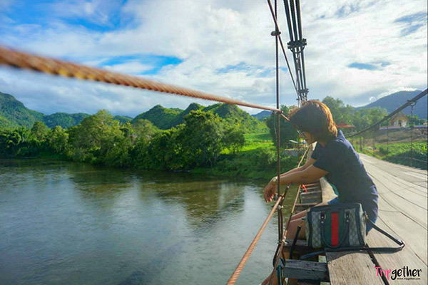สะพานแขวนนี้ไม่ใช่สถานที่ท่องเที่ยว เป็นเพียงเส้นทางสัญจรของชาวบ้านในละแวกนี้จึงทำให้มีรถมอเตอร์ไซต์วิ่งเข้าออกตลอดเวลา สำหรับนักท่องเที่ยวที่อยากแวะไปถ่ายรูปก็ต้องใช้ความระมัดระวังกันหน่อยนะคะ (Location : ใกล้วัดหาดงิ้ว อ.ไทรโยค)