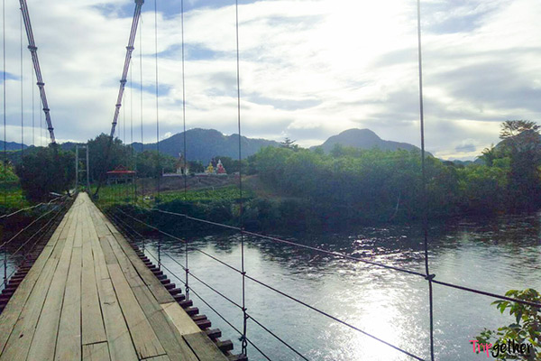 แต่ระหว่างทางที่ขับรถกันงงๆ เราเลยบังเอิญไปเจอสะพานแขวนข้ามแม่น้ำเข้าหมู่บ้านหนึ่ง ที่ให้อารมณ์คล้ายๆ กับสะพานข้ามแม่น้ำที่วังเวียงยังไงยังงั้น เลยไม่พลาดลงไปถ่ายรูปเล่นกันสักหน่อย