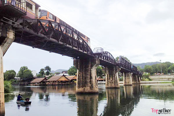 หลังจากกินข้าวอิ่ม เดินถ่ายรูปกันสักพัก มองท้องฟ้า มองแม่น้ำแล้วสูดลมหายใจเข้าลึกๆ และพร้อมที่จะมีแรงกลับไปลุยงาน สู้กับความวุ่นวายของกรุงเทพฯ เราก็เดินทางเข้ามายังตัวเมืองกาญฯ ก่อนที่กลับว่าจะหาข้าวเย็นกินกันสักมื้อ เลยขับรถวนไปตั้งหลักแถวๆ สะพานข้ามแม่น้ำแคว อีกหนึ่งไฮไลท์ที่ต้องมาเช็คอินท์เมื่อมาถึงกาญจนบุรี