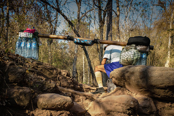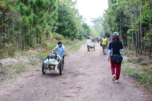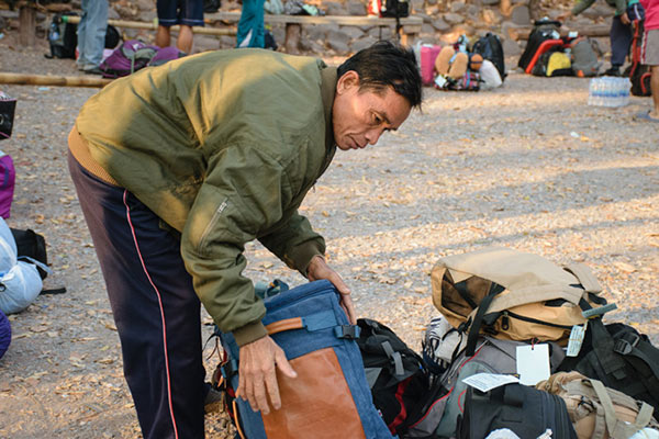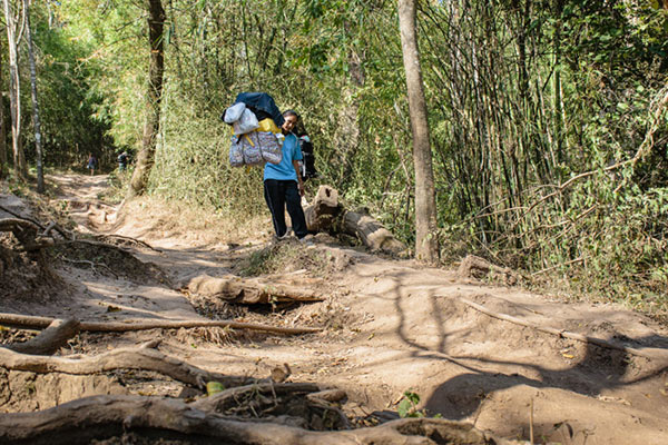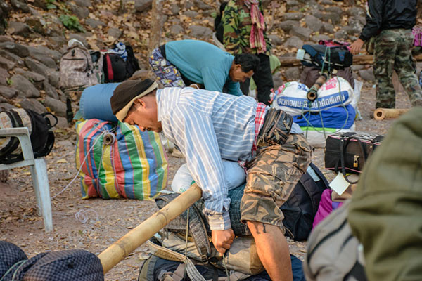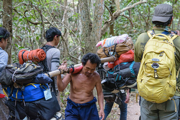 ระหว่างรวบรวมกำลังใจจะเดินหน้าต่อไป เราก็เฝ้ามองลูกหาบ จนรู้สึกฮึกเหิมได้ที่ก็ลุย