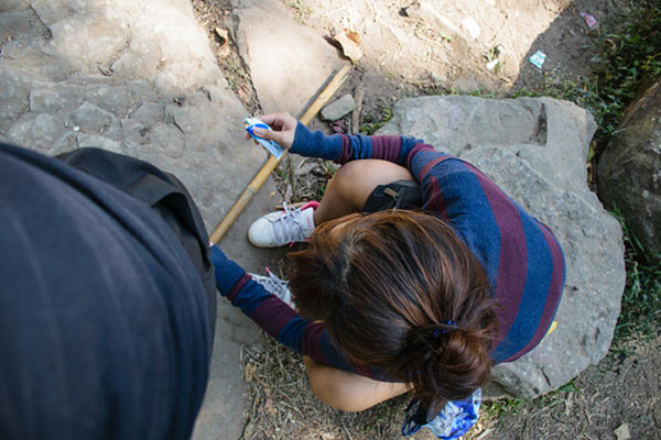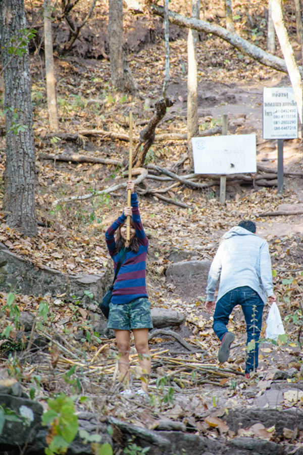 เจอกองไม้ไผ่ที่อ่านมาว่า ต้องมีไว้ช่วยชีวิต ไม่ได้ไว้ตีหมานะคะ ไว้พยุงร่างขึ้นเขาค่ะ