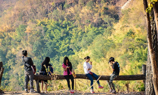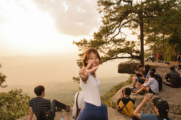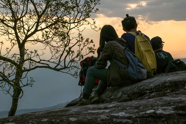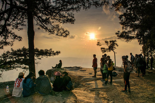 พักพอหายเหนื่อย เราก็ต้องรวบรวมกำลังภายในที่เหลืออยู่น้อยนิด มุ่งมั่นไปดูพระอาทิตย์ตกที่ผ่าหมากดูก ระยะทาง 2 กิโลเมตร อย่าลีลา…ออกเดินทางได้ แค่นี้เองจิ๊บๆ ชั่วโมงเดียวก็ถึง