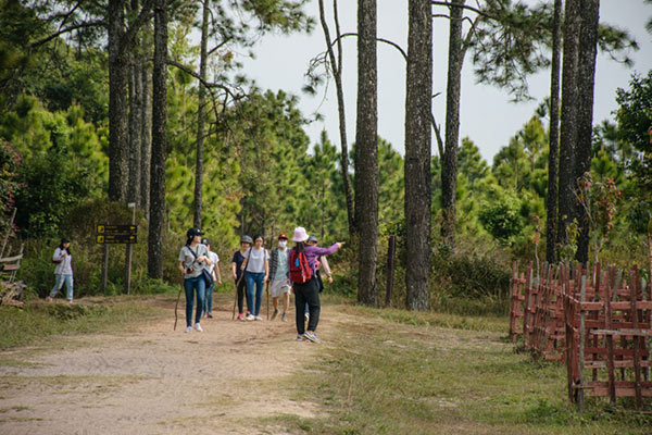 หายเหนื่อย ยินดีกับชัยชนะเรียบร้อย เราก็ออกเดินทาง มุ่งหน้าไป วังกวางอีก 3.5 กิโลเมตร ไม่น่าจะมีอะไรมาก เดินฟินๆเรื่อยๆไม่ต้องไต่ ไม่ต้องใช้สองมือ สองเท้า คลานอีกต่อไปโฮโฮ ยังคงคึกคัก ตามหาต้นสนที่ยืนเด่นต้อนรับนักเดินทางต้นคู่นี้อ้ะเปล่านะ?