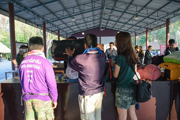 หลังจากจ่ายค่าเต็นท์ ค่าเข้าอุทยานเรียบร้อยเราก็มาที่จุดช่างสัมภาระค่ะ ตื่นเต้นมากค่ะ เพราะเราขนกันมาแบบจัดเต็มสามฤดูกาล