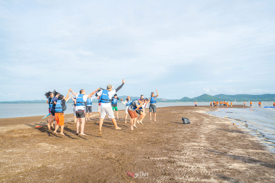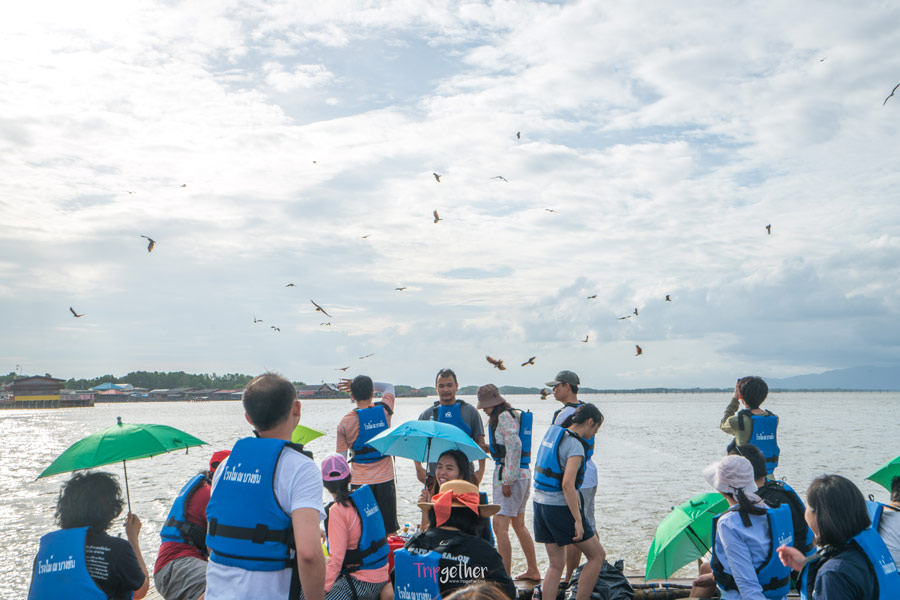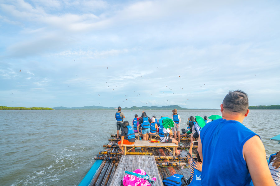 เราใช้เวลาถ่ายรูป เล่นน้ำกันที่ทะเลแหวกสักพัก ก็ขึ้นแพเพื่อล่องกลับไปยังที่พัก ซึ่งระหว่างทาง แพจะจอดให้เราได้เล่นน้ำทะเล และชมเหยี่ยวคอแดง ซึ่งเป็นอีกหนึ่งไฮไลท์ที่ต้องชมเมื่อมาเที่ยวที่หมู่บ้านไร้แผนดิน