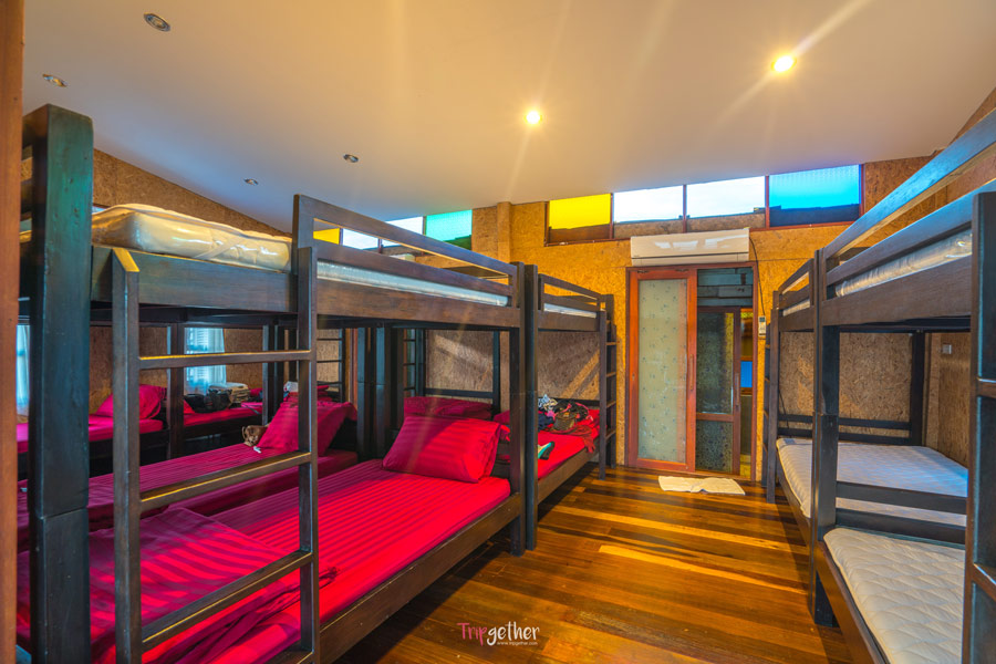 บรรยากาศภายในห้องพัก แบบนอนรวมสำหรับกลุ่มใหญ่ ตั้งอยู่ริมทะเล ติดกับป่าชายเลน บรรยากาศดีสุดๆ
