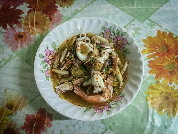9 โมงตรงเป๊ะ เรานั่งอยู่ที่ร้าน เจ๊อี๊ด ตรงเวลาสุดๆ ภายในร้านดูเป็นตรอกห้องแถวปรกติ ต้อนรับด้วยพิธีเปิดโอลิมปิคที่ริโอจากทีวี ผมเลยจัดการสั่งก๋วยเตี๋ยวและพลางดูทีวีไป อ่าห์…หน้าตาดูดีเลย หลังจากที่แม่ค้านำมาเสริฟบนโต๊ะ ผมซัดปลาหมึกคำแรกก็ดูสดดี ตามด้วยกั้ง กุ้ง สลับกับน้ำซุปและเส้นบะหมี่ วนกันไป อืม รสดูเค็มแฮะ ต้มยำทำไมเค็ม สงสัยคงเพิ่งเปิดร้านน้ำซุปเลยยังไม่ได้ที่ละมั้ง ส่วนตัวผมว่าเครื่องอาหารทะเล นี่ดีเลย สด อร่อย แต่รสน้ำซุปกับเส้น ก็ดูเฉยๆ ธรรมดา อ้อ ก๋วยเตี๋ยวค่อนข้างรสจัดผมเองทานได้สบาย ส่วนใครไม่ทานเผ็ดก็อย่าลืมแจ้งพี่เขาละ