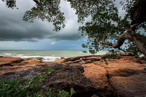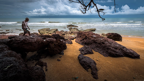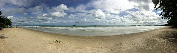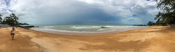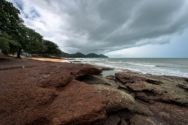 หาดสวยมาก มีฉากหน้าเป็นหิน ก้อนเล็กบ้างใหญ่บ้างสลับจัดเรียงกันไป ฉากหลังเป็นฟ้าครึ้มฝนกับก้อนเมฆแปลกประหลาดที่โชว์ตระหง่านตาอยู่ตรงหน้า คนชอบถ่ายรูปแบบผมคงรอพระอาทิตย์ตกที่นี่แทบไม่ไหว แต่คงรอไม่ได้เพราะเย็นนี้ต้องนอนอีกที่ ซึ่งใช้เวลาในการเดินทาง 1.30ชม. (ก้มหน้าเศร้า) ช่วงสายของที่นี่ผู้คนไม่พลุกพล่าน เงียบ สงบ สงบจริงๆไม่ต้องรอร้านไหนเปิด