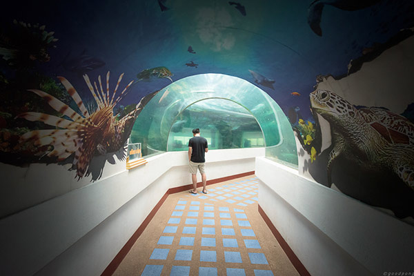 ภายในมีสัตว์น้ำให้ชมไม่มากเนื่องจากสถานที่ไม่ได้ใหญ่โตอะไร แต่ก็มีอุโมงค์เป็นไฮไลท์ของที่นี่ให้พอตื่นตาตื่นใจอยู่ไม่น้อย