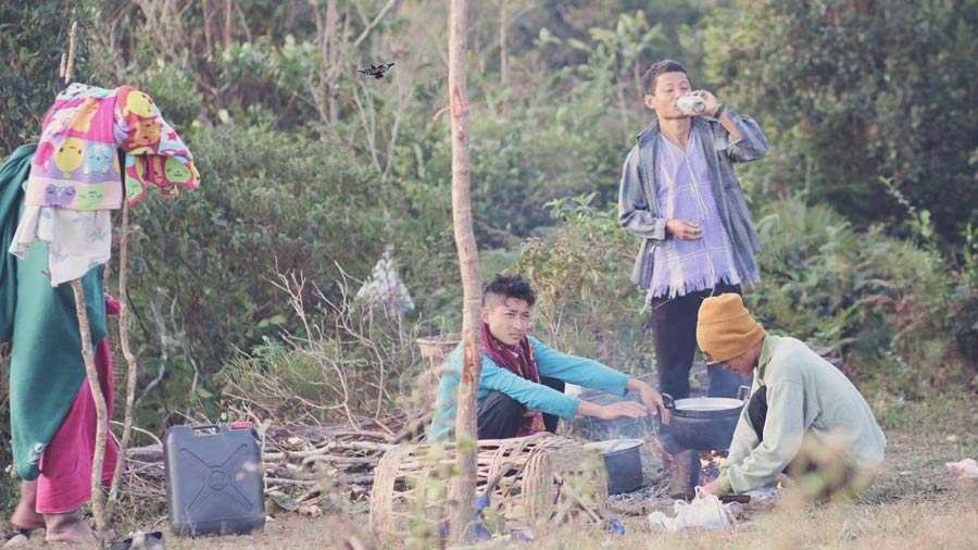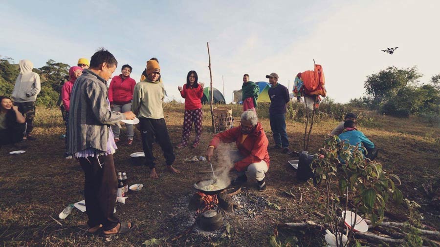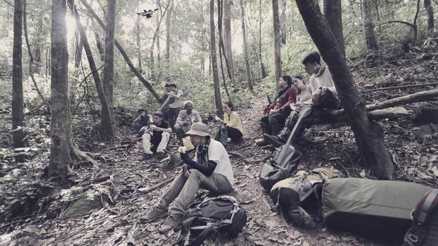 พักทานเที่ยงกลางป่า ที่จุดตั้งแค้มป์จะมีลำธารเล็กเป็นน้ำดื่มน้ำกิน น้ำใช้น้ำอาบพอได้อยู่ วันนี้ก็กางเต็นท์ ทำกับข้าว พักผ่อน นอนดูดาว พรุ่งนี้ค่อยเริ่มกันใหม่กับเส้นทางสู่ ย อ ด พ า วี…