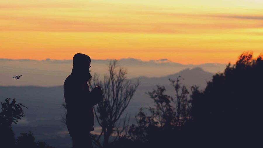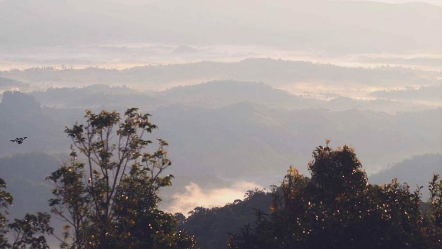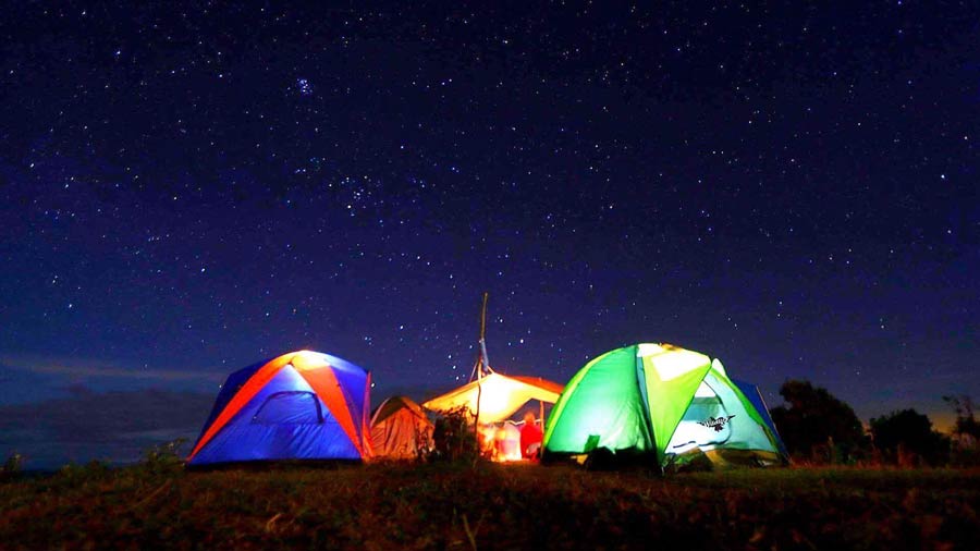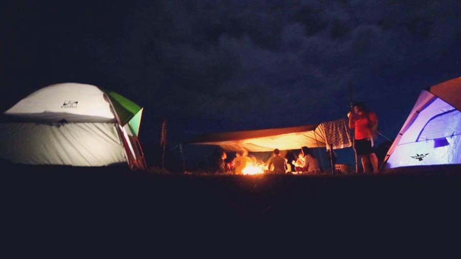 จากจุดชมพระอาทิตย์ตก มองกลับไปจะเห็นจุดตั้งแคมป์…