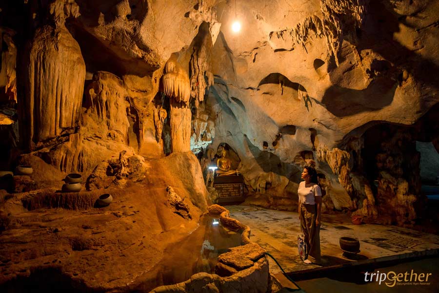 เมื่อเข้าไปภายในถ้ำมีหินงอกหินย้อยสุดตระกาตาให้เราได้ชมกัน ว่ากันว่าเดิมทีวัดแห่งนี้มีถ้ำเป็นอุโบสถ โดยภายในถ้ำมีพระพุทธรูปปางสมาธิประดิษฐานเป็นพระประธาน รวมทั้งเป็นที่ประดิษฐานพระบรมสารีริกธาตุที่อัญเชิญมาจากประเทศเมียนมาอีกด้วนะ