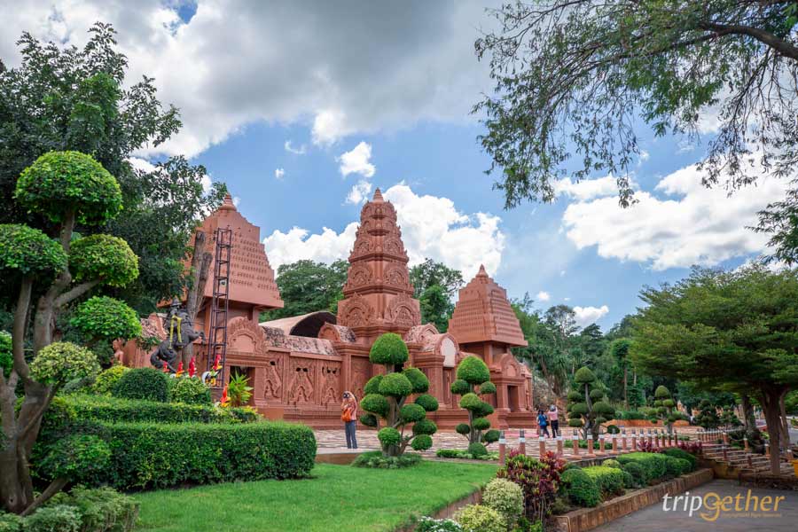 ขับรถจากกาญจน์ ริเวอร์แคว เรสเตอรองไปประมาณ 20 นาที ก็จะถึงโลเคชั่นถัดมาใน ทริปเที่ยวกาญจนบุรี นั่นก็คือ วัดถ้ำพุหว้า วัดสวยกาญจนบุรี ที่มีความโดดเด่นด้วย ปราสาทหินทราย ตั้งตระหง่านท่ามกลางความเขียวขจีของหมู่แมกไม้