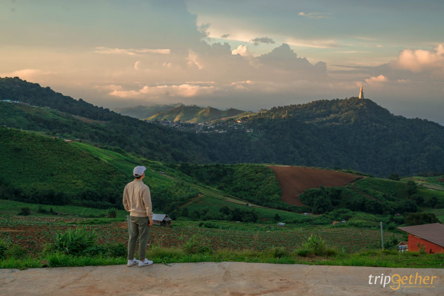 จากตรงนี้จะมองเห็นวิวภูเขาสลับซับซ้อนสุดลูกหูลูกตา แถมยังเห็น วัดพระธาตุผาซ่อนแก้ว ทุ่งกังหันลม และวิวขุนเขาแบบพาโนรามา 360 องศาเลยนะ