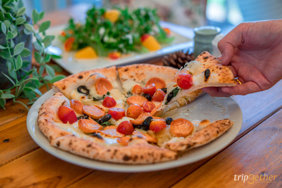 เมนูเด็ดต้องลองคือ พิซซ่าเตาถ่านสไตล์เนเปิลส์ แป้งบางกรอบอบสดใหม่ หรือจะลอง ซี่โครงหมูรมควันอบโรสแมรี่ รสชาติกลมกล่อม กินคู่กับเครื่องดื่มโฮมเมดเย็นๆ ก็อร่อยไม่แพ้กัน เป็นจุดแวะพักระหว่างทริปที่อิ่มอร่อยแถมได้ถ่ายรูปกันจนเม็มเต็มแน่นอน