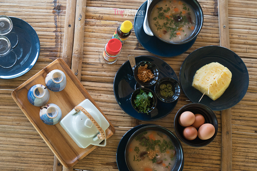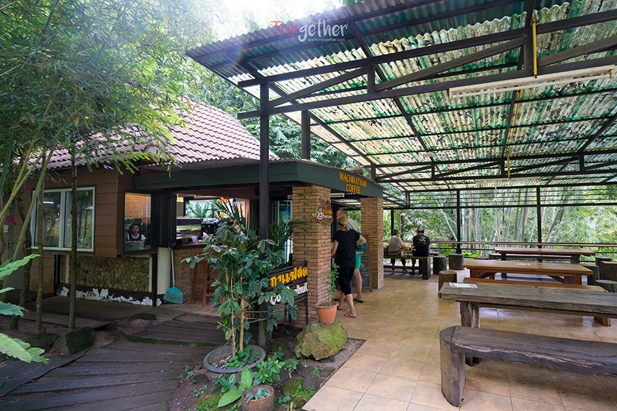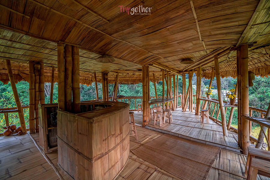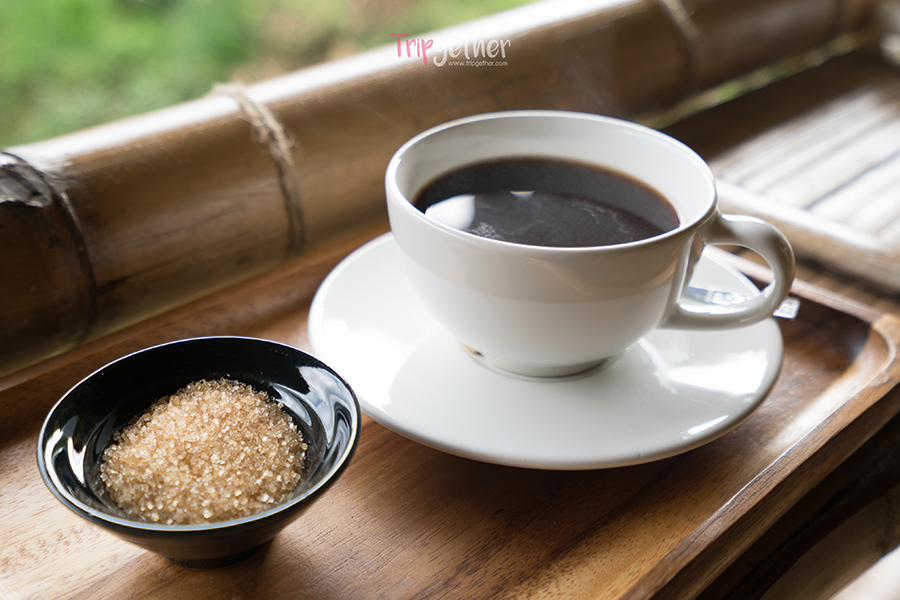 หลังถ่ายรูปและเดินป่าเสร็จก็กลับมาเก็บกระเป๋าและทานอาหารเช้าที่บ้านไม้ไผ่ มื้อเช้านี้มีกาแฟสดให้ทานด้วย