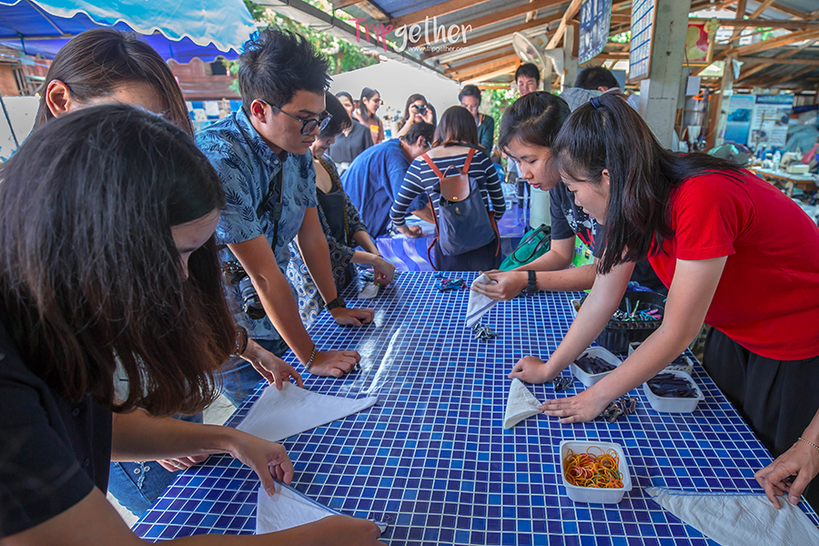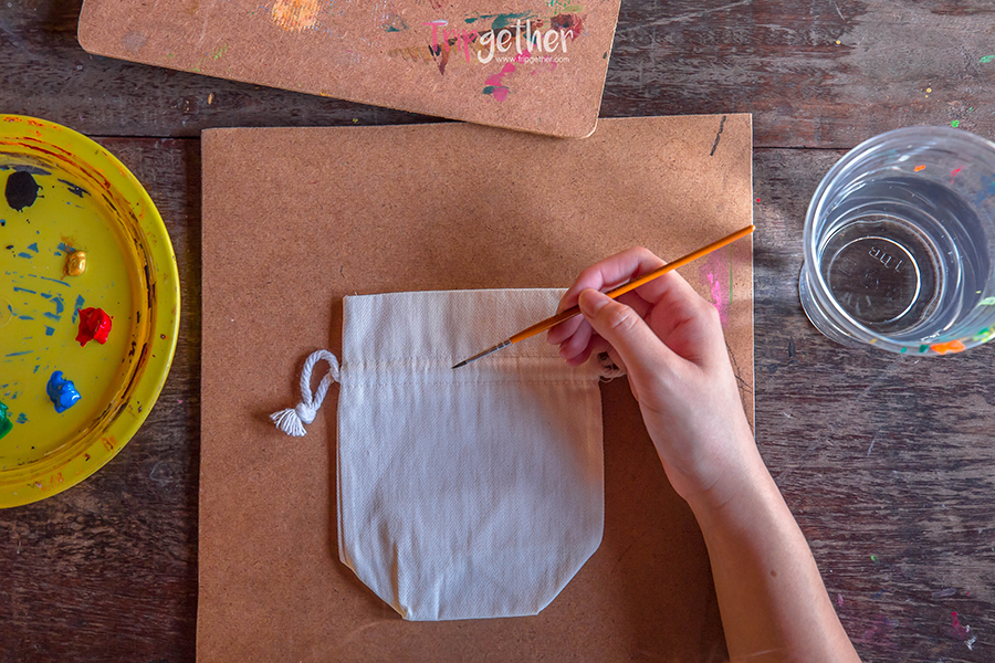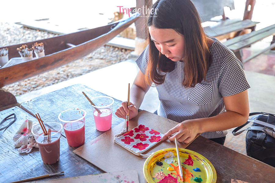 ต่อมาพี่ๆ ทีมงานบอกว่ามีงานศิลปะเล็กๆ น้อยๆ ให้ทำกันระหว่างรอทำเวิร์กช็อปชงชาในช่วงสุดท้ายนั่นก็คือ เพ้นท์ถุงใส่กระปุกชาและซองชา สนุกละสิทีนี้ ขอโชว์สกิลวาดรูปตัวเองหน่อยเหอะ