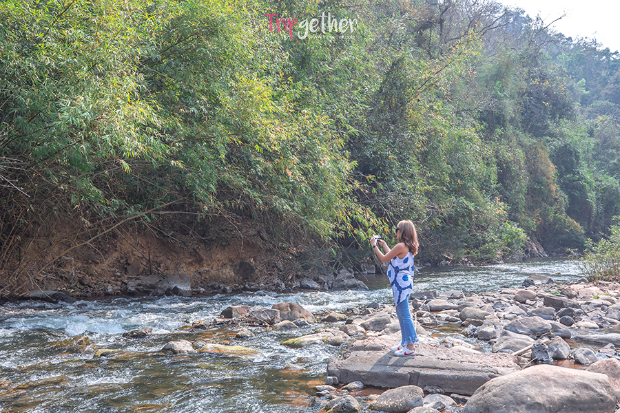 คุณลุงที่ค้ำแพบอกว่า ช่วงบริเวณที่ล่องแพและหน้าหมู่บ้านนี้เป็นเหมือนสถานีอนุรักษ์พันธุ์ปลาที่สำคัญอีกแห่งหนึ่งเลย เพราะเป็นเขตห้ามจับสัตว์น้ำ ใครมาจับปลาจะโดนปรับตัวละ 500 บาท ไม่ว่าคนในหรือคนนอก ชาวบ้านที่จะจับปลาต้องขึ้นไปทางต้นนำอีกหน่อยนึงถึงจะสามารถจับได้