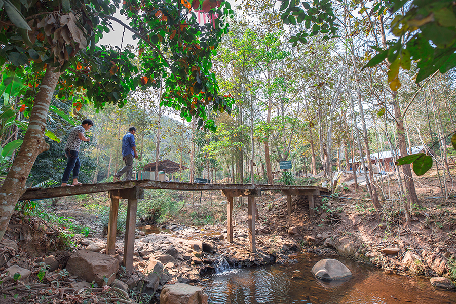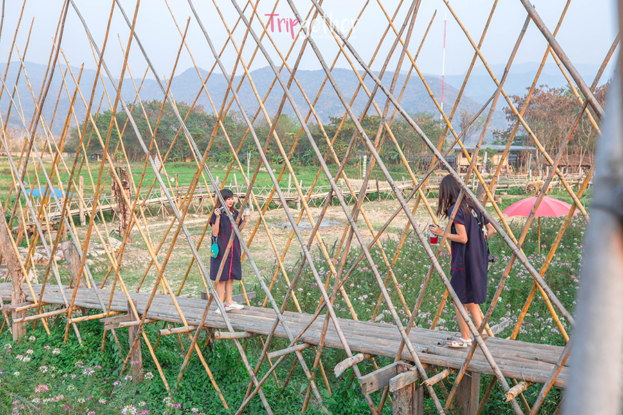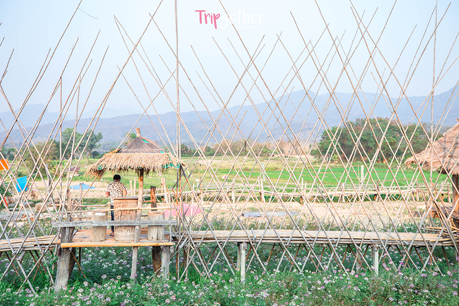 ช่วงบ่ายแก่ๆ เรากล่าวขอบคุณก่อนเดินทางออกจากบ้านห้วยพ่าน ไปยังร้าน ลำดวนผ้าทอ Lamduan Partro ช่วงที่เราไปทางศูนย์ปิดทำการแล้ว แต่ใกล้ๆ กันยังมีร้านกาแฟบ้านไทลื้อของกลุ่มลำดวนผ้าทอเปิดอยู่ แถมด้านหลังร้านยังมีสวนดอกไม้และสะพานไม้ไผ่ให้ได้ถ่ายรูปด้วย ผนวกกับวันนี้แต่ละคนบ่นคล้ายๆ กันคือรู้สึกเพลียๆ กับการนั่งรถเลยเข้าไปนั่งพักผ่อนกันสักพัก