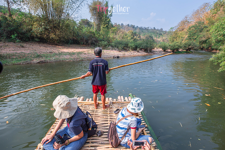 แต่ด้วยข้อจำกัดด้านเวลาของทริป เราเลยได้แค่ล่องแพในระยะสั้นๆ เพื่อซึมซับบรรยากาศท่องเที่ยวของที่นี่ไว้ให้มากที่สุด แต่ถ้าใครมาแล้วมีเวลาว่างมากพอ อาผู้ใหญ่บ้านแนะนำให้เดินเส้นทางศึกษาธรรมชาติด้วยครับ เพราะชาวบ้านที่นี่ตั้งใจและใช้เวลาพลิกฟื้นผืนป่านานมาก กว่าป่าจะกลับมาสมบูรณ์ขนาดนี้ สำหรับคนที่ล่องแพ สามารถให้อาหารปลาจากบนแพได้ครับ น้ำใสเห็นตัวปลาชัดเจนดี