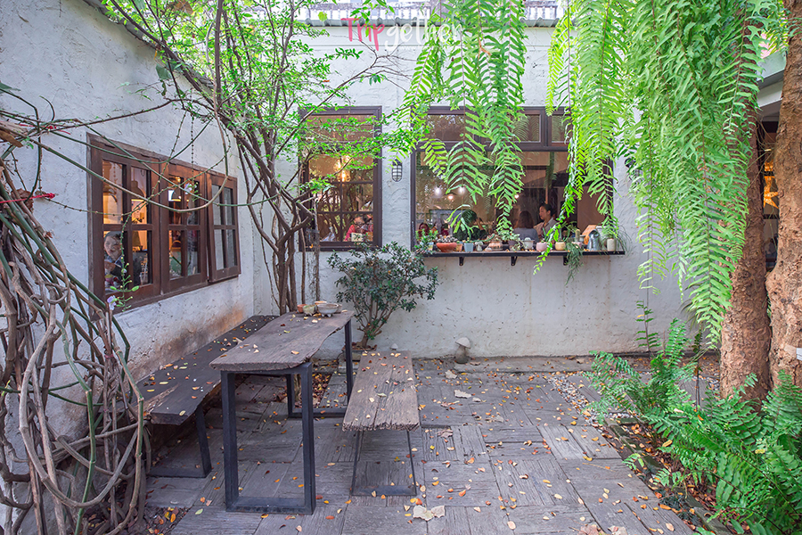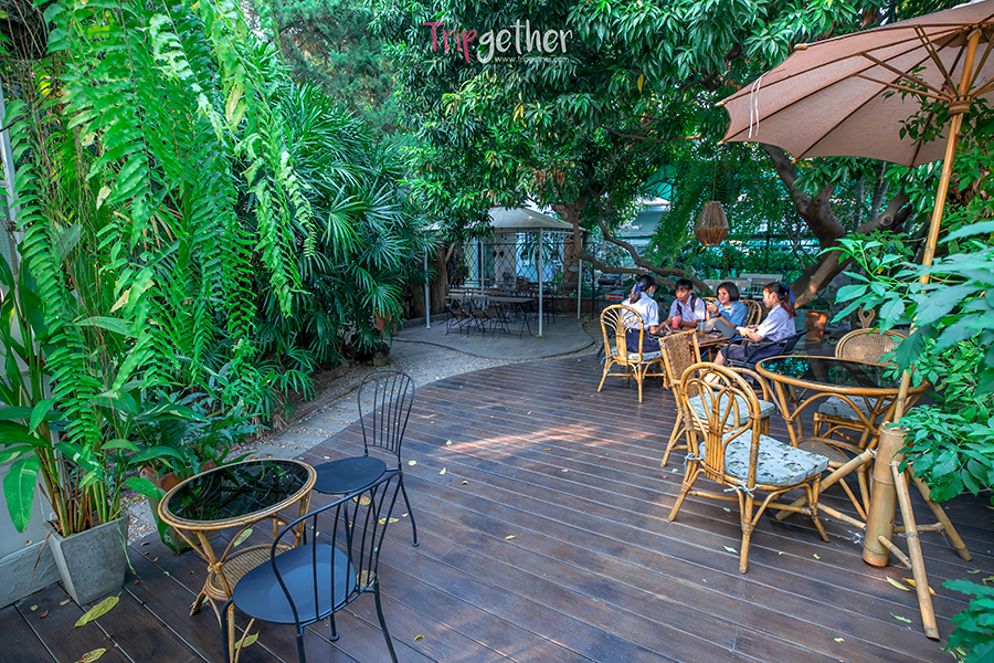 บรรยากาศนอกร้านก็ร่มรื่นดี มีมุมให้นั่งชิลล์ นั่งเม้าท์กับเพื่อนๆ หลายมุมเลย