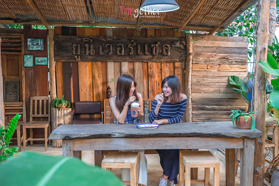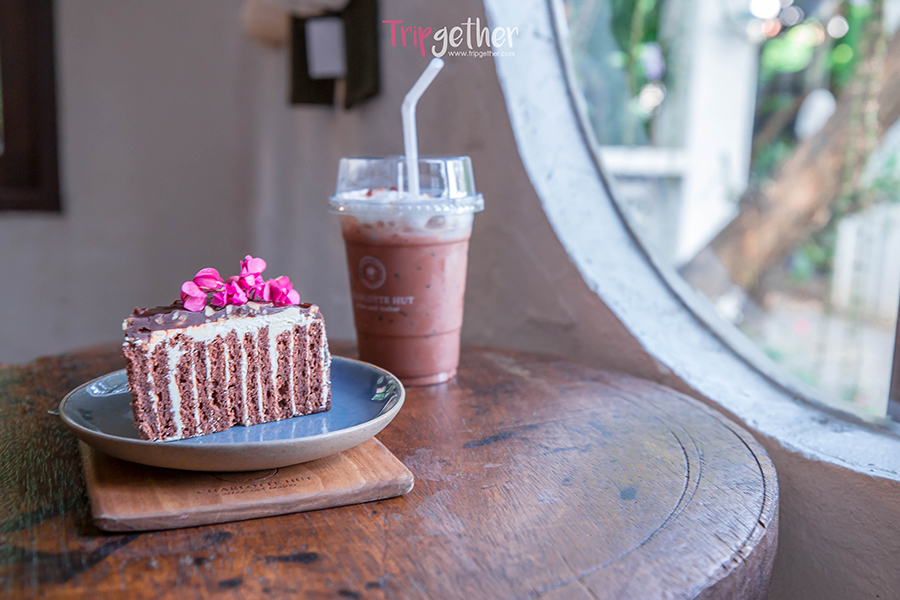 กล่าวขอบคุณและบอกลากับพี่ๆ ที่คำมีสตูดิโอเรียบร้อย ก็ได้เวลาพักผ่อนของชาวทริปซะที ก่อนเข้าพักเลยแวะมาร้าน Charlotte Hut Coffee & Tea Bar หาเครื่องดื่มเย็นๆ กับเค้กอร่อยๆ มาทานกันสักหน่อย
