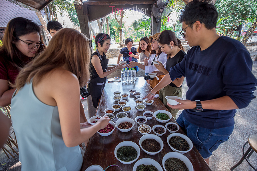 ลองครบทุกสูตรแล้วก็ลุยครับ ใครชอบกลิ่นไหน รสชาติไหนตอนชิม ก็ลองผสมเองเลย ผิดถูกไม่เป็นไรเอาอร่อยเราไว้ก่อนจังหวะนี้ โดยเมื่อได้สูตรที่โดนใจแล้วจะมีอุปกรณ์เป็นซองชาและขวดแก้วเล็กๆ ให้ได้เก็บชาของตัวเองไว้เป็นที่ระลึกกลับไปครับ