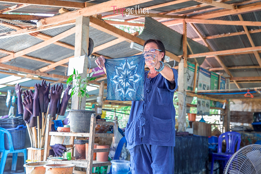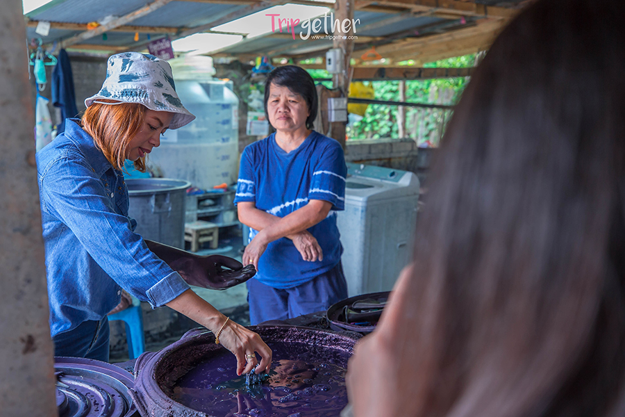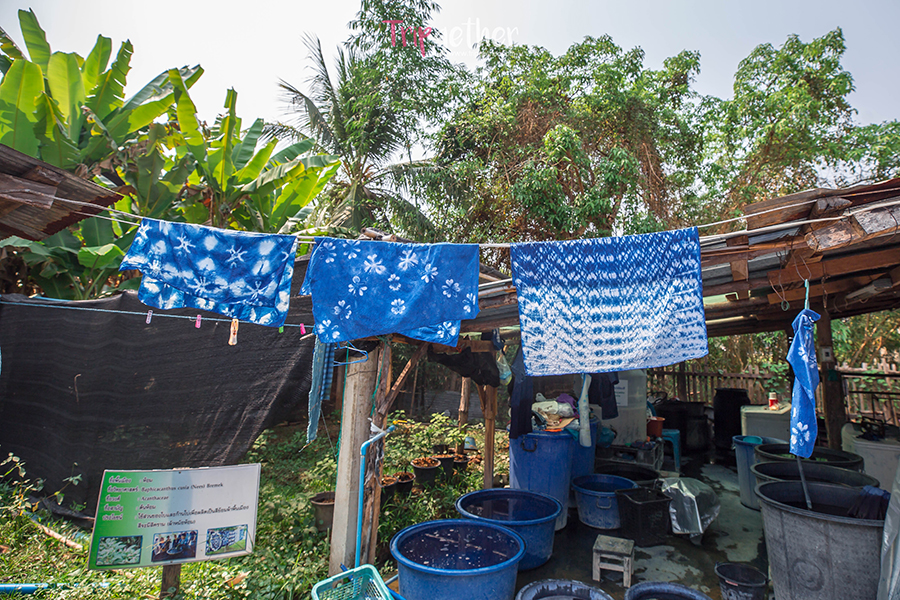 จากร้านอาหารปั๋นใจ๋ ก็เดินทางกันต่อไปยัง สหกรณ์ผู้ผลิตหม้อห้อมทุ่งโฮ่งแพร่ ของวิสาหกิจชุมชนหม้อห้อมทุ่งเจริญย้อมสีธรรมชาติ ที่นี่เราได้พบกับป้าเหงี่ยม ที่พาเราไปเรียนรู้และเยี่ยมชมสาธิตการทำผ้าหม้อห้อมแบบง่ายๆ คุณป้าได้อธิบายความรู้เกี่ยวกับการปรับสภาพกรดเบสของน้ำที่ได้จากต้นห้อมก่อนนำไปทำเสื้อวิธีการทำลวดลายบ้านผ้า และเกร็ดการทำผ้าหม้อห้อมให้ฟังอีกเล็กน้อย ก่อนจะให้เราได้ลงมือทำผ้าหม้อห้อมของตัวเอง