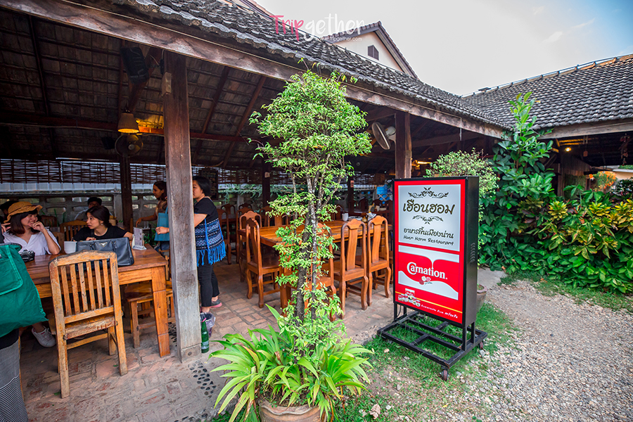 เสร็จสรรพก็เดินทางออกจากหอศิลป์ริมน่าน มาทานอาหารเย็นกันที่ เฮือนฮอม ร้านอาหารเมืองน่าน