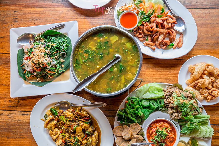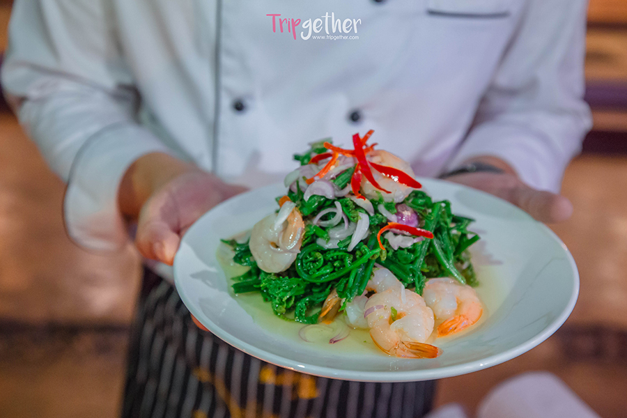 ไก่ทอดอย่างเดียวกลัวไม่อิ่ม วันนี้เชฟเลยทำยำผักกูดให้คนในทริปด้วย น่าทานไปอีก