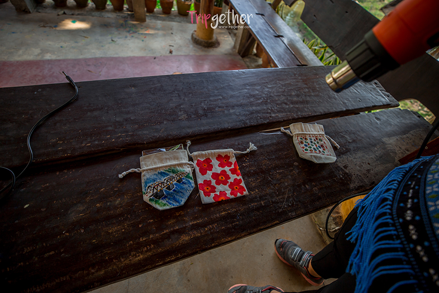 หลังวาดเสร็จก็เอาถุงมาให้พี่ๆ เป่าลมร้อนเพื่อให้สีแห้งเร็วขึ้น เสร็จแล้วครับถุงชาของผม (ไม่ต้องบอกก็รู้นะครับว่าอันไหน)
