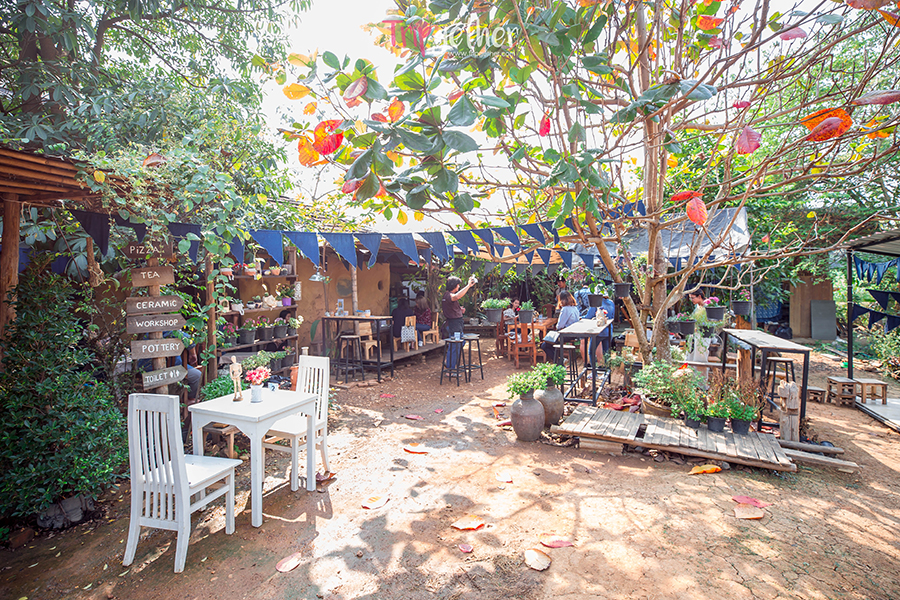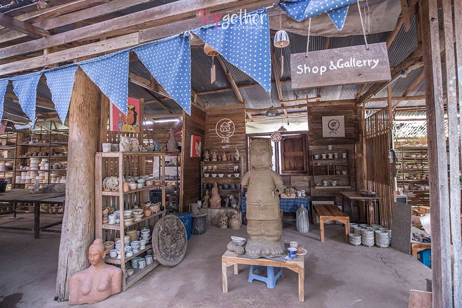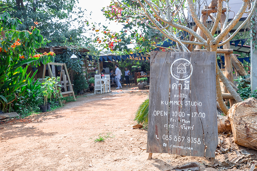 หลังวุ่นอยู่กับสอบถามข้อมูลเพิ่มเติมเรื่องผ้าหม้อห้อมและช้อปปิ้งอยู่อีกพักใหญ่ เราก็เดินทางมาต่อกันที่ คำมีสตูดิโอ (Kummee Studio) ที่นี่มีงานปั้นดินขาวหรือดินเซรามิก งานศิลปะที่จัดแสดงอยู่ใต้ร่มไม้และแดดยามบ่ายให้ได้ชมกันแบบเพลินๆ