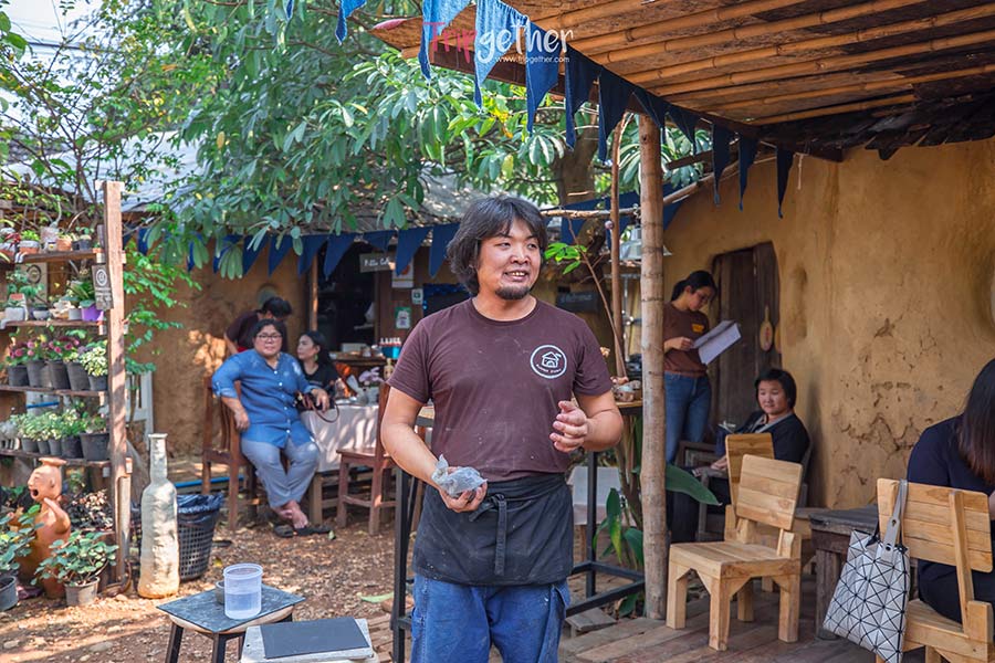 สำหรับไฮไลท์ของคำมีสตูดิโอแห่งนี้อยู่ที่ workshop ปั้นดิน ที่ให้นักท่องเที่ยวได้สร้างสรรค์งานของตัวเองขึ้นมา แถมใครที่หิวก็สามารถสั่งพิซซ่าหรือเบอร์เกอร์ของทางร้านมาทานได้อีกต่างหาก แอบเสียดายที่ตอนนั้นไม่ได้สั่งมาลองเพราะยังอิ่มขนมจีนจากปั๋นใจ๋กันอยู่เลย ซึ่งหลังจากเดินชมรอบๆ ได้สักพัก พี่โก้ เจ้าของสตูดิโอก็กล่าวแนะนำ ก่อนจะเข้าสู่ช่วงเวิร์กช็อป โจทย์ในการปั้นครั้งนี้แน่นอนว่าคือถ้วยน้ำชาครับ เอาไว้ใส่ชาที่เราจะได้ผสมเองในวันที่ 3 นั่นล่ะครับ