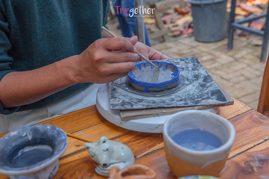 ใครที่ลังเลใจหรือกลัวว่าจะทำไม่เป็นไม่ต้องห่วงเลยนะครับ เพราะพี่โก้แนะนำและสาธิตทุกขั้นตอนแบบง่ายๆ สามารถทำตามได้เลยทันที ใครมีข้อสงสัยหรือต้องการความช่วยเหลือก็บอกได้ พี่โก้และทีมงานพร้อมเข้าไปให้ความช่วยเหลืออย่างเต็มที่ และในระหว่างทำพี่โก้ก็จะคอยบรรยายสอดแทรกความรู้ให้เราเรื่อยๆ อย่างเช่น ชนิดของดินที่นำมาผสมกันเพื่อให้ดินขึ้นรูปได้ ประเภทของสีที่ใช้ในงานเซรามิก ความหนาของงานปั้น ฯ ทำไปได้ความรู้ไป น่าจะถูกใจใครหลายคนเลยทีเดียว
