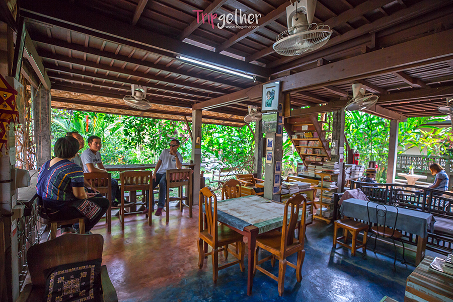 ห้องสมุดบ้านๆ น่านๆ จุดหมายแรกของเรา เป็นห้องสมุดที่มีร้านกาแฟเล็กๆ ซ่อนอยู่ด้านใน ให้นักอ่านหรือนักท่องเที่ยวที่แวะเข้ามาได้ดื่มด่ำความสดชื่นและความสวยงามของเนื้อหาในหนังสือไปพร้อมๆ กัน รอบๆ ร้านมีมุมให้นั่งอ่านหนังสือกันแบบเพลินๆ หลายมุมทีเดียว