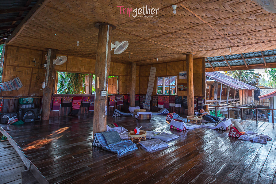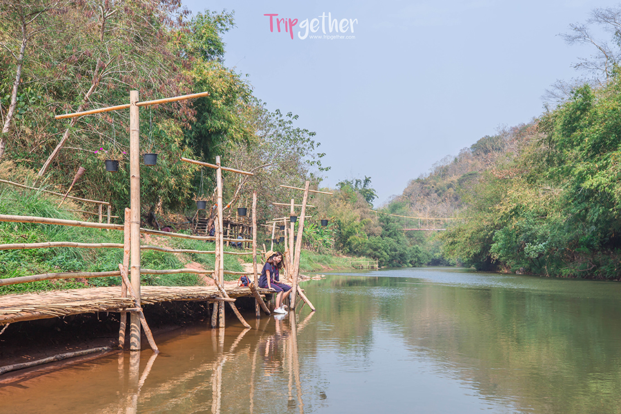 ช่วงบ่ายแก่ๆ เรากล่าวขอบคุณก่อนเดินทางออกจากบ้านห้วยพ่าน ไปยังร้าน ลำดวนผ้าทอ Lamduan Partro ช่วงที่เราไปทางศูนย์ปิดทำการแล้ว แต่ใกล้ๆ กันยังมีร้านกาแฟบ้านไทลื้อของกลุ่มลำดวนผ้าทอเปิดอยู่ แถมด้านหลังร้านยังมีสวนดอกไม้และสะพานไม้ไผ่ให้ได้ถ่ายรูปด้วย ผนวกกับวันนี้แต่ละคนบ่นคล้ายๆ กันคือรู้สึกเพลียๆ กับการนั่งรถเลยเข้าไปนั่งพักผ่อนกันสักพัก
