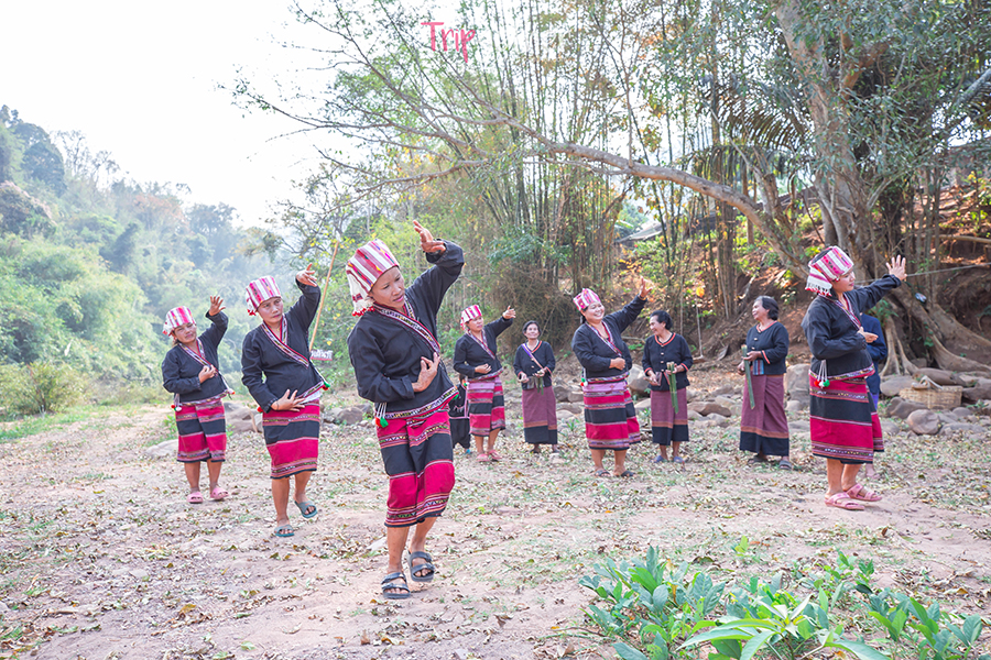 ขึ้นมามีการแสดงฟ้อนของสาวๆ ชาวละหู่ ให้ได้ชมกันใต้ร่มไม้ใหญ่ สวยงามไปอีกแบบหนึ่งครับ