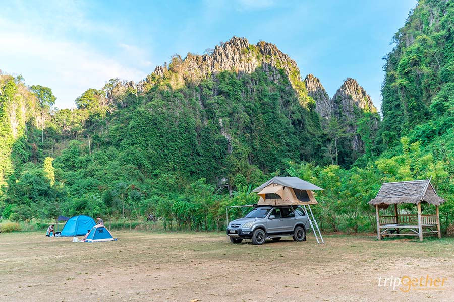 นั่งกินชิลล์ๆ หน้าเต็นท์ พร้อมลมพัดเย็นๆ