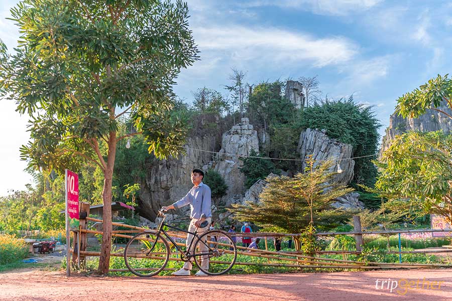ภูเขาหินพระปรางค์สามยอด เป็นอีกหนึ่งจุดเช็คอินที่ไม่ควรพลาด ด้วยความอลังการของภูเขาหินที่ถูกกัดกร่อนตามการเวลาจนมีลักษณะคล้ายกับพระปรางค์สามยอดที่ลพบุรี รถอีแต๋นนำเที่ยวจะพาเรามาจอดชมซึ่งเพื่อนๆ สามารถครีเอทมุมถ่ายรูปได้อย่างเต็มที่