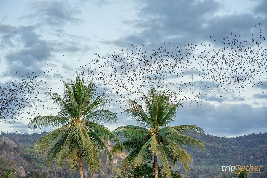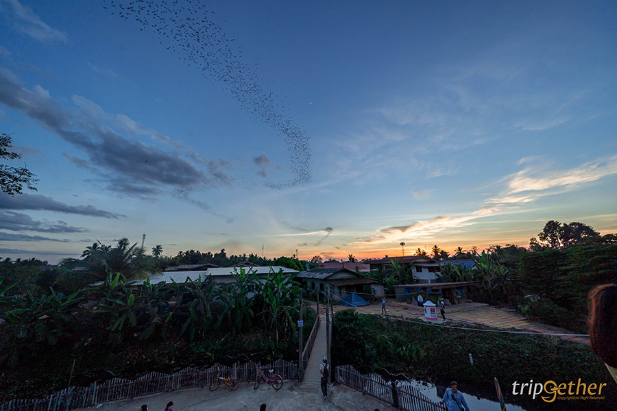 ยิ่งช่วงแสงอาทิตย์กำลังจะหมด จะได้เห็นท้องฟ้าแบบทไวท์ไลท์และค้างคาวที่บินเรียงกันเป็นสายอย่างสวยงาม