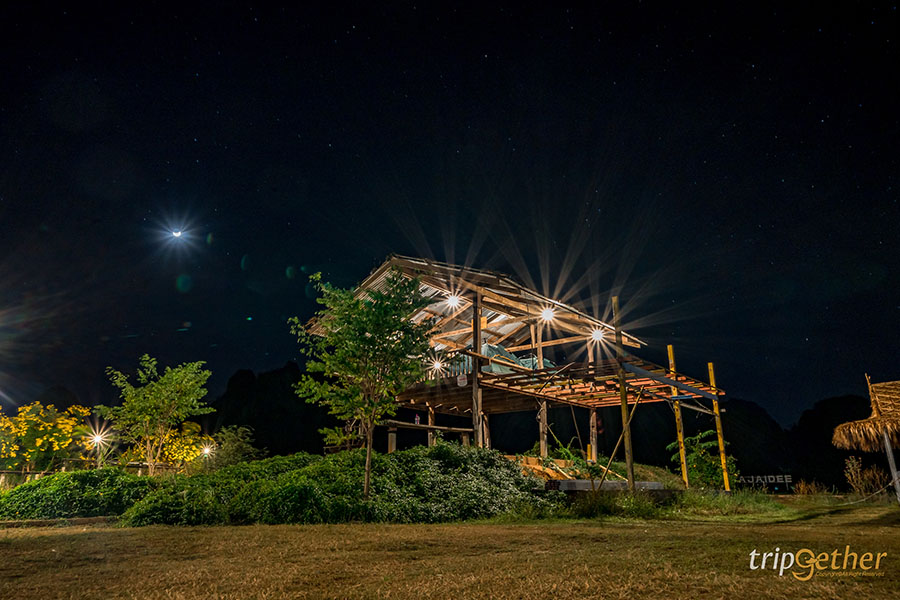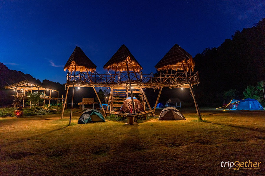 บรรยากาศยามค่ำคืนเงียบสงบ เหมาะสำหรับมานอนพักผ่อนจริงๆ หรือใครที่กำลังมองหาลานกางเต็นท์บรรยากาศส่วนตัวอยู่แนะนำให้มาที่นี่เลย
