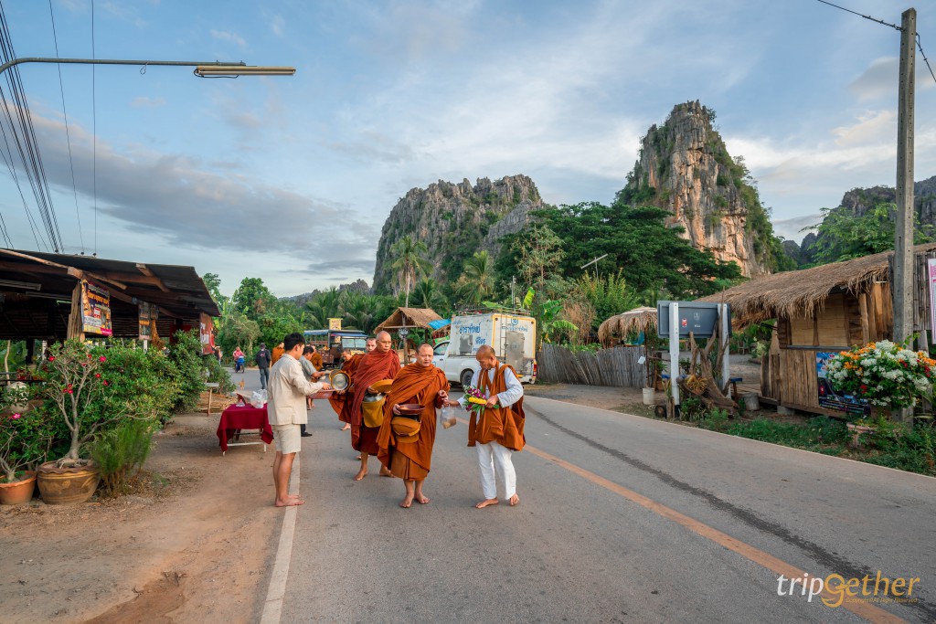 เช้าวันสุดท้ายของทริปนี้ เราตื่นตั้งแต่เช้าเพื่อไปทำบุญตักบาตรที่กลางหมู่บ้าน เป็นอีกหนึ่งกิจกรรมยามเช้าของหมู่บ้านบ้านมุง อ.เนินมะปราง ที่จะมีพระมาเดินบิณฑบาตรตั้งแต่เวลา 06.30 น. ทุกวัน สามารถซื้อของทำสำหรับตักบาตรได้ที่ร้านค้ากลางหมู่บ้านเลย